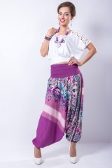 Гламурные широкие брюки из хлопкового полотна с купонным рисунком. Верх изделия дополнен широким манжетом, обработанным швом <<резинка>>, что обеспечивает прекрасную посадку. По низу изделия -- манжеты.