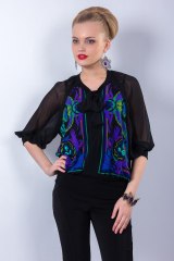 Рекомендуем сочетать блузку с крупными серьгами и браслетом. Аксессуары можно заказать у нас, ремни, бусы, серьги представлены в разделе "Ремни, аксессуары".