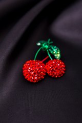 Брошь из металла серебрянного цвета, украшенная стразами.