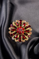 Брошь из металла золотого цвета, украшенная стразами. Диаметр: 5 см.