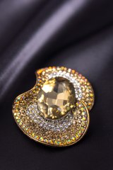 Брошь из металла золотого цвета, украшенная стразами. Диаметр: 5 см.