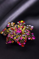 Брошь из металла золотого цвета, украшенная стразами. Диаметр: 5 см.