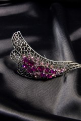Брошь из металла серебряного цвета, украшенная стразами. Длина: 7 см.
