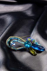 Брошь из металла серебряного цвета, украшенная стразами. Длина: 7 см.