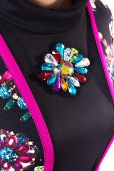 Пришивной декоративный элемент, состоящий из крупных разноцветных страз на фетровой основе. Размер: 9 * 11 см.