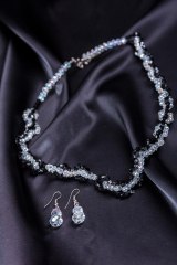 Комплект (серьги и бусы) из пластиковых бусин. Длина: 50+5 см.