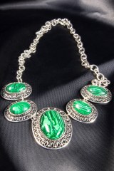 Подвес из металла серебряного цвета с вставками из камня. Длина: 40 + 5 см.