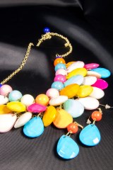 Комплект (серьги и бусы) из разноцветных пластиковых бусин. Длина: 50 см.