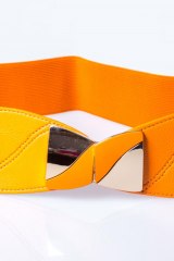 Ремень-резина с металлической пряжкой, декорированной искусственной кожей. Ширина: 7 см. Талия до 110 см.