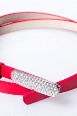 Ремень узкий красный со стразами. Длина ремня от 82 до103 см.