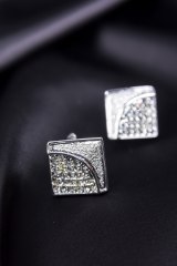 Серьги из металла серебрянного цвета, украшенные стразами. Длина: 3 см.