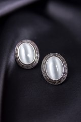 Серьги из металла серебряного цвета, украшенные камнем. Длина: 2 см.