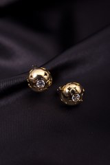 Серьги-гвоздики из металла золотого цвета, украшенные стразами. Диаметр: 2 см.