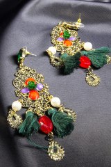Серьги крупные из металла, украшеннные бусинками, кисточками. Длина: 7 см.