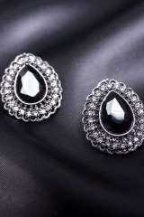 Серьги крупные, выполненные из металла, украшенные стразами. Длина: 3 см.