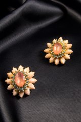 Серьги крупные из металла, украшеннные стразами. Длина: 4 см.