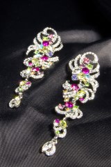 Серьги крупные, выполненные из металла, украшенные стразами. Длина: 6 см.
