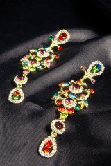 Серьги крупные, выполненные из металла, украшенные стразами. Длина: 6 см.