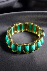 Браслет на резинке из металлических деталей, украшенных стразами. Ширина: 5 см.