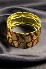 Браслет на резинке из металлических деталей, украшенных эмалью. Ширина: 4 см.