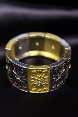Браслет на резинке из металлических деталей, украшенных стразами. Ширина: 5 см.
