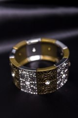 Браслет на резинке из металлических деталей, украшенных стразами. Ширина: 5 см.