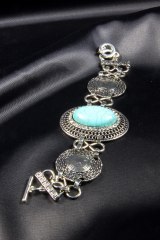 Браслет гибкий из металла с вставками из страз и камня. Длина: 15 + 5 см.