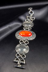 Браслет гибкий из металла с вставками из страз и камня. Длина: 15 + 5 см.