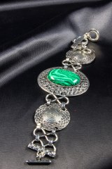 Браслет гибкий из металла с вставками из страз и камня. Длина: 15 + 5 см.