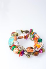 Браслет гибкий из скрученной в пружину проволочки, на которую нанизаны бусинки.