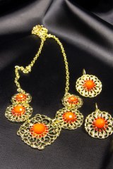 Комплект (серьги и колье) из металла золотого цвета, с вставками из матовых страз. Длина: 40 + 7 см.