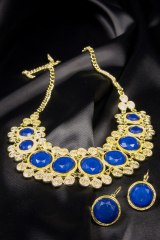 Комплект (серьги и колье) из металла золотого цвета, с вставками из матовых страз. Длина: 40 + 7 см.