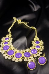 Комплект (серьги и колье) из металла золотого цвета, с вставками из матовых страз. Длина: 40 + 7 см.