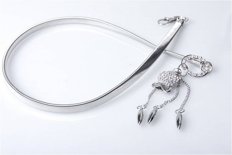 Ремень металлический. Ширина: 1 см. Длина: 85+25 см.
