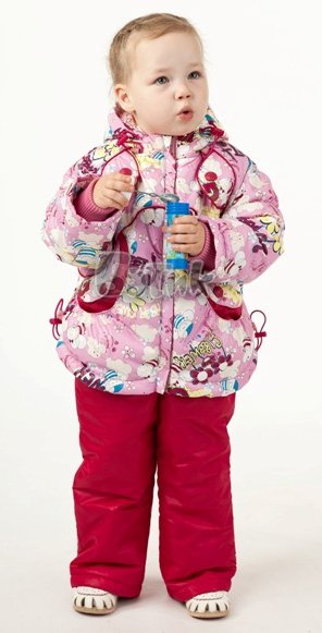 Костюм для девочки: куртка и полукомбинезон на лямках.