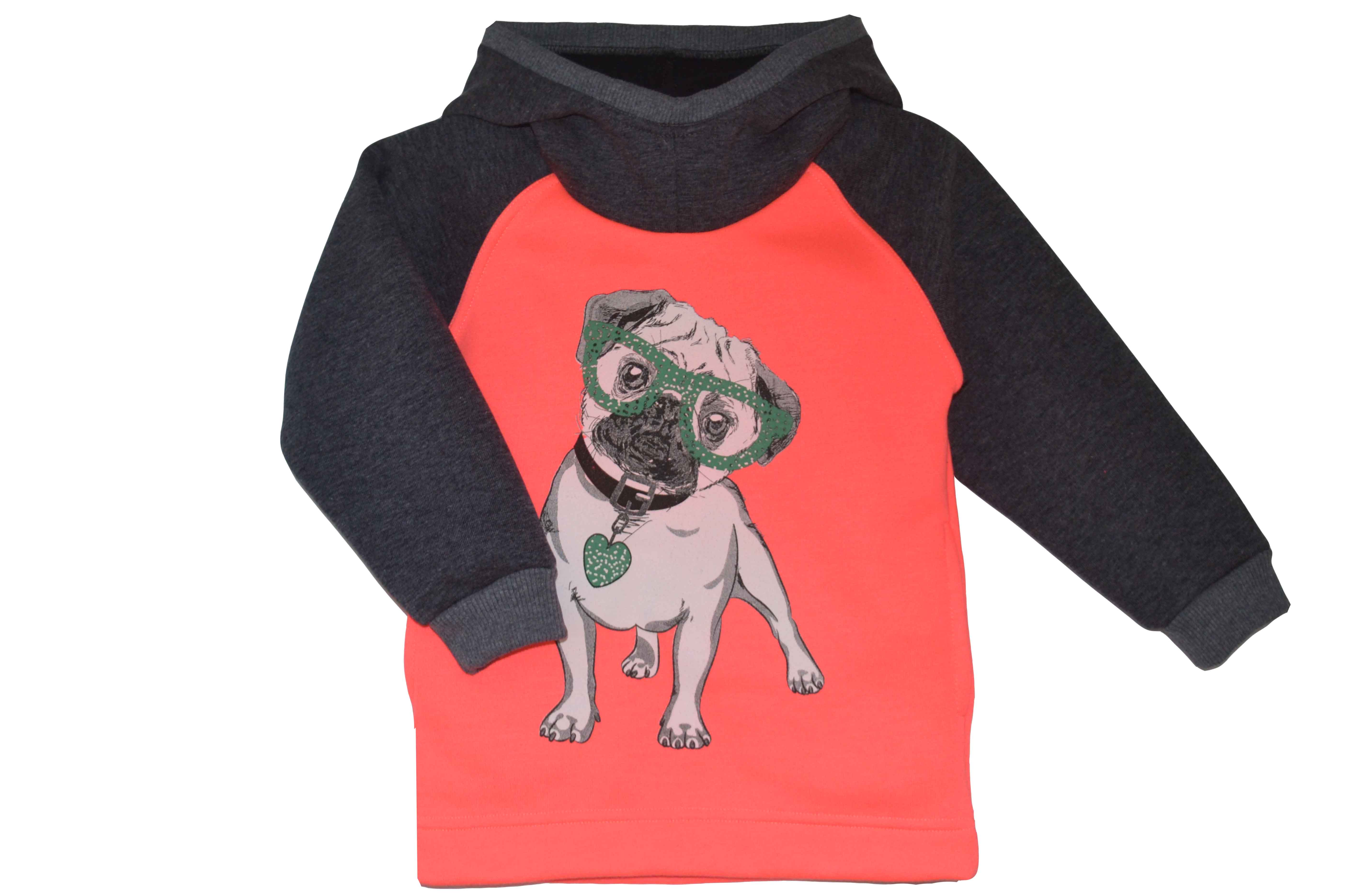 Джемпер с длинным рукавом,капюшоном и с карманами в боковых швах. Принт.