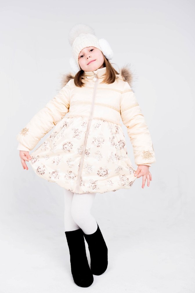 вышитыми розочками. Капюшон съемный, регулируется