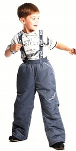 Брюки на резинке с бретелями, которые регулируются по длине.