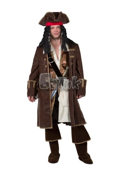 Комплектация: рубаха с жилетом, брюки с сапогами, камзол, бандана, треуголка, пояс-2шт., кушак, парик, сабля