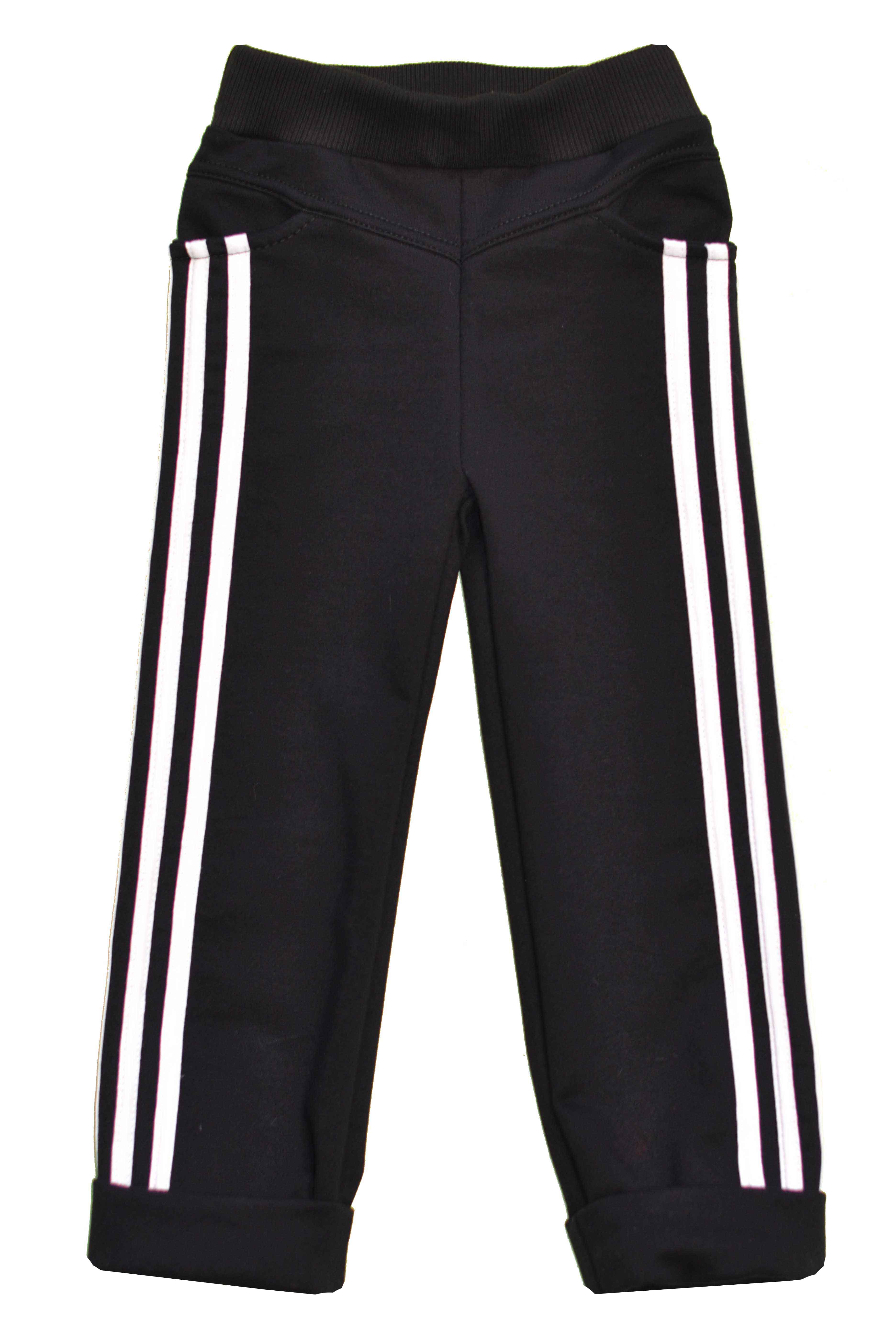 Брюки на манжетах, с двумя карманами. По боковым швам лампасы.