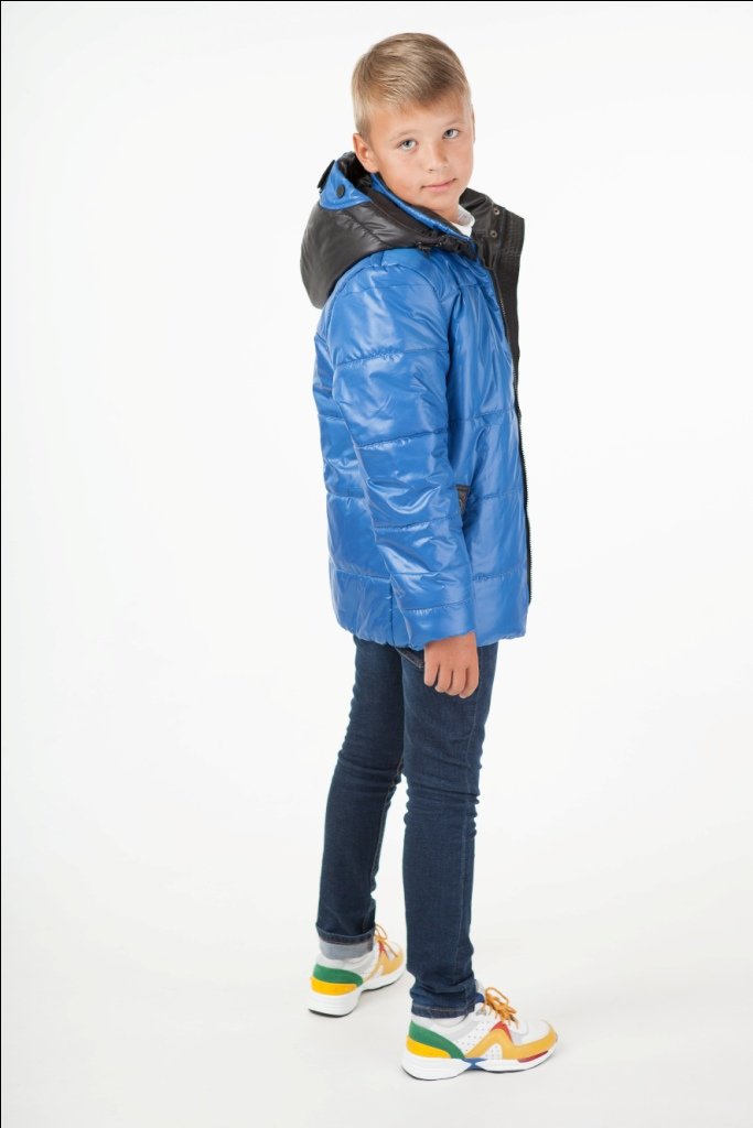 Капюшон спереди застегивается на кнопки, регулируется по