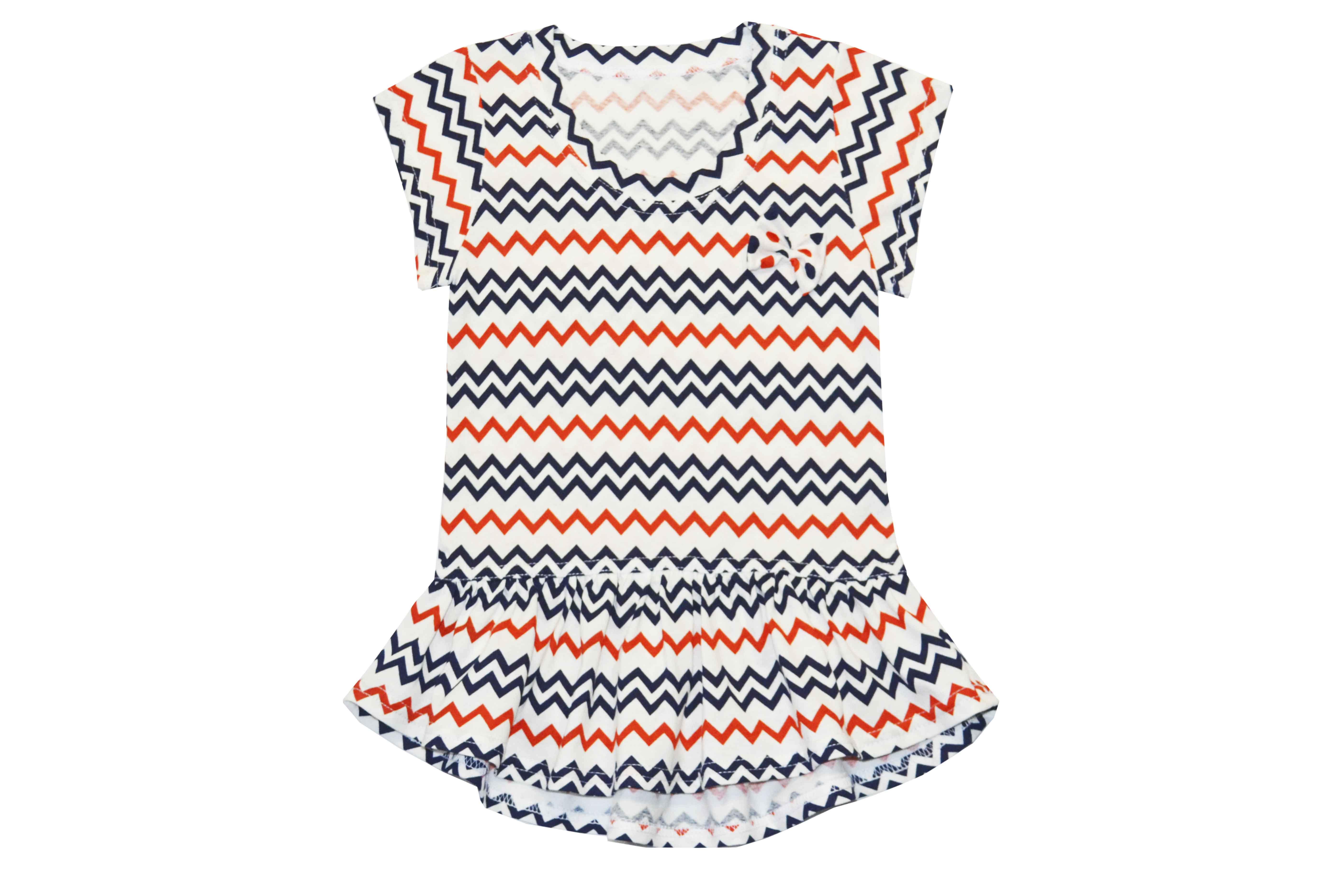 Туника средней длины, с коротким рукавом. По переду настрочен декоративный бантик.