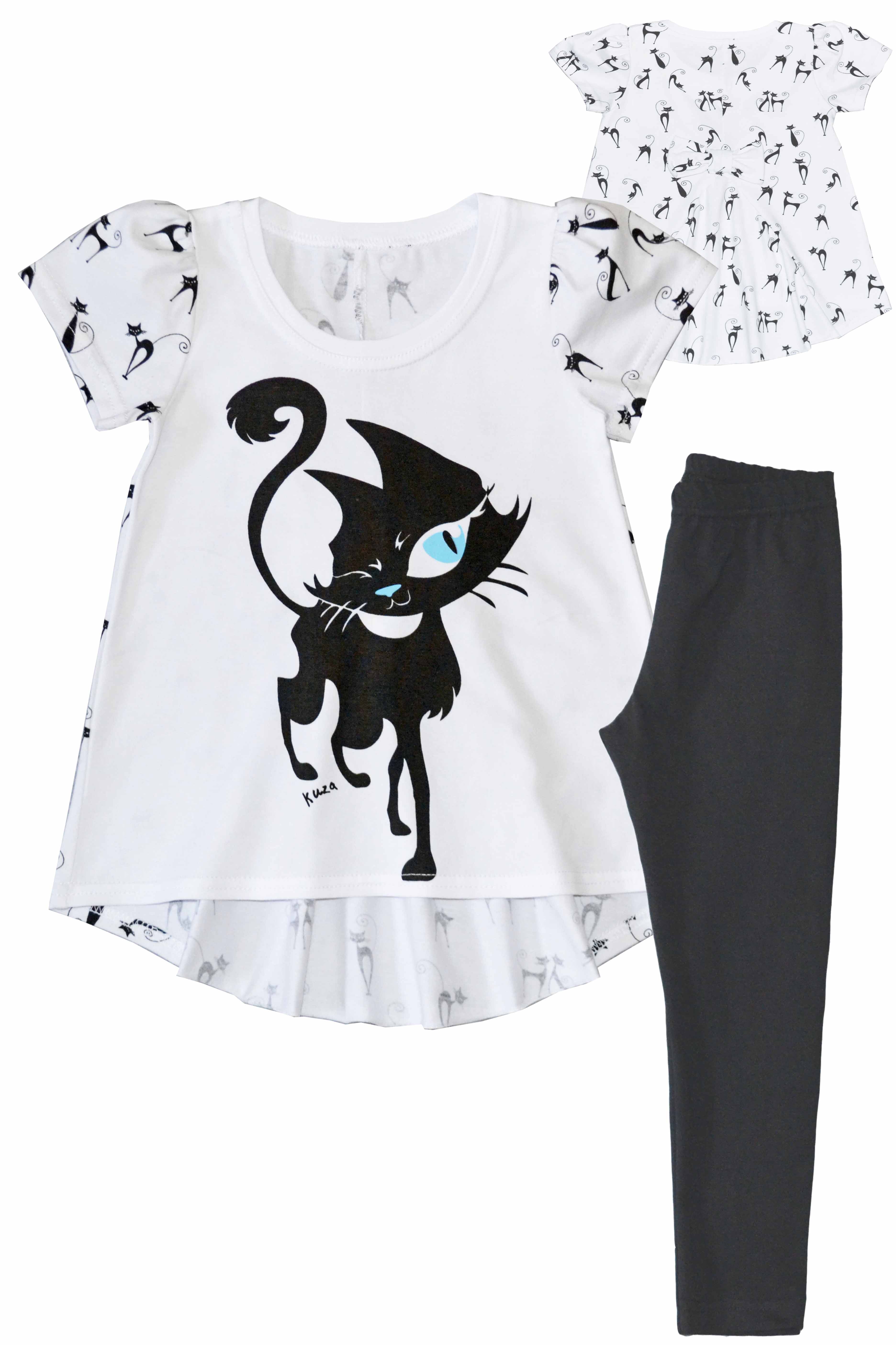 Джемпер с коротким рукавом. Сзади декоративная вставка с бантиком. Принт. Бриджи длинные.
