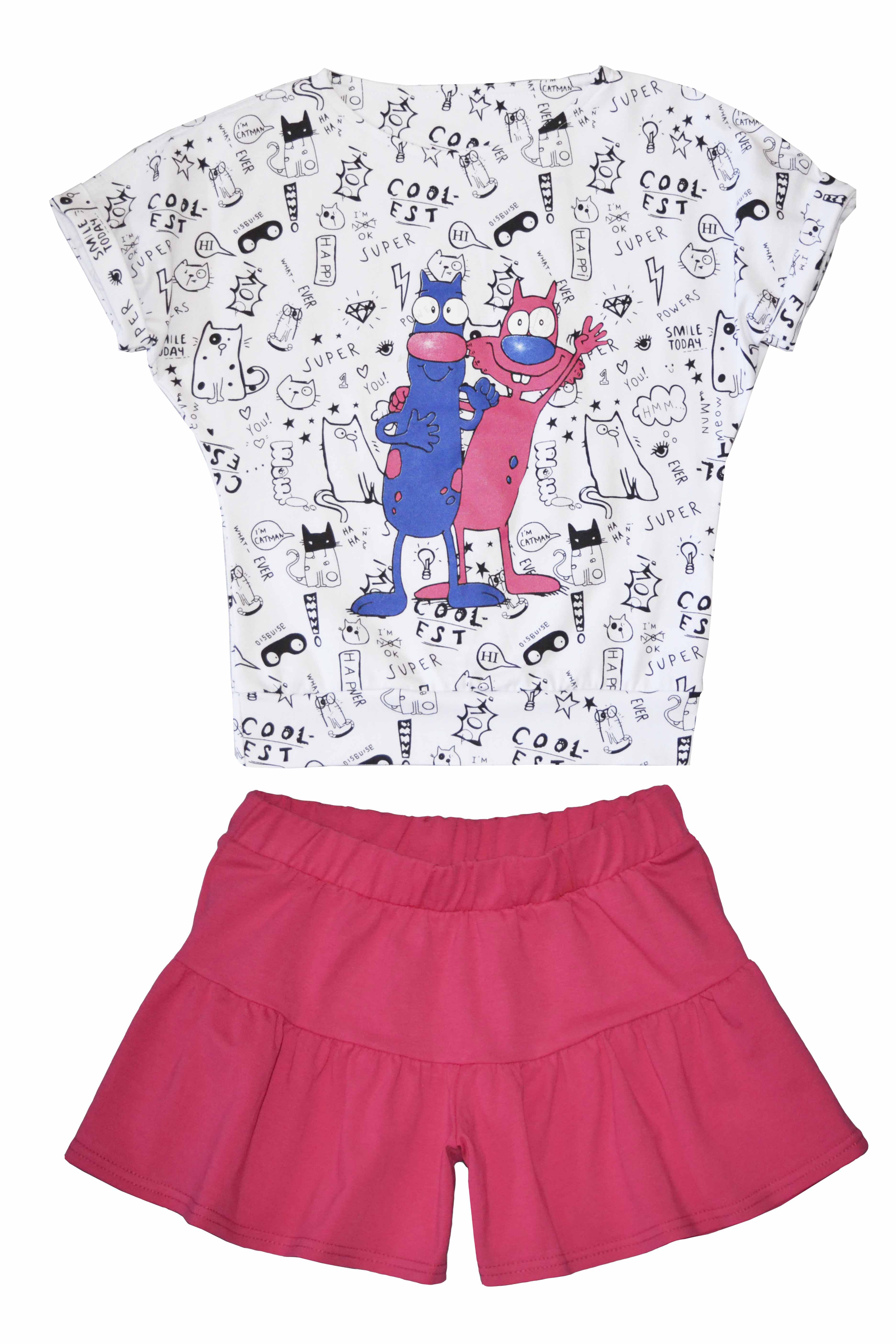 Джемпер с коротким рукавом на манжетах. Низ джемпера на манжете. Принт. Юбка-шорты короткие.
