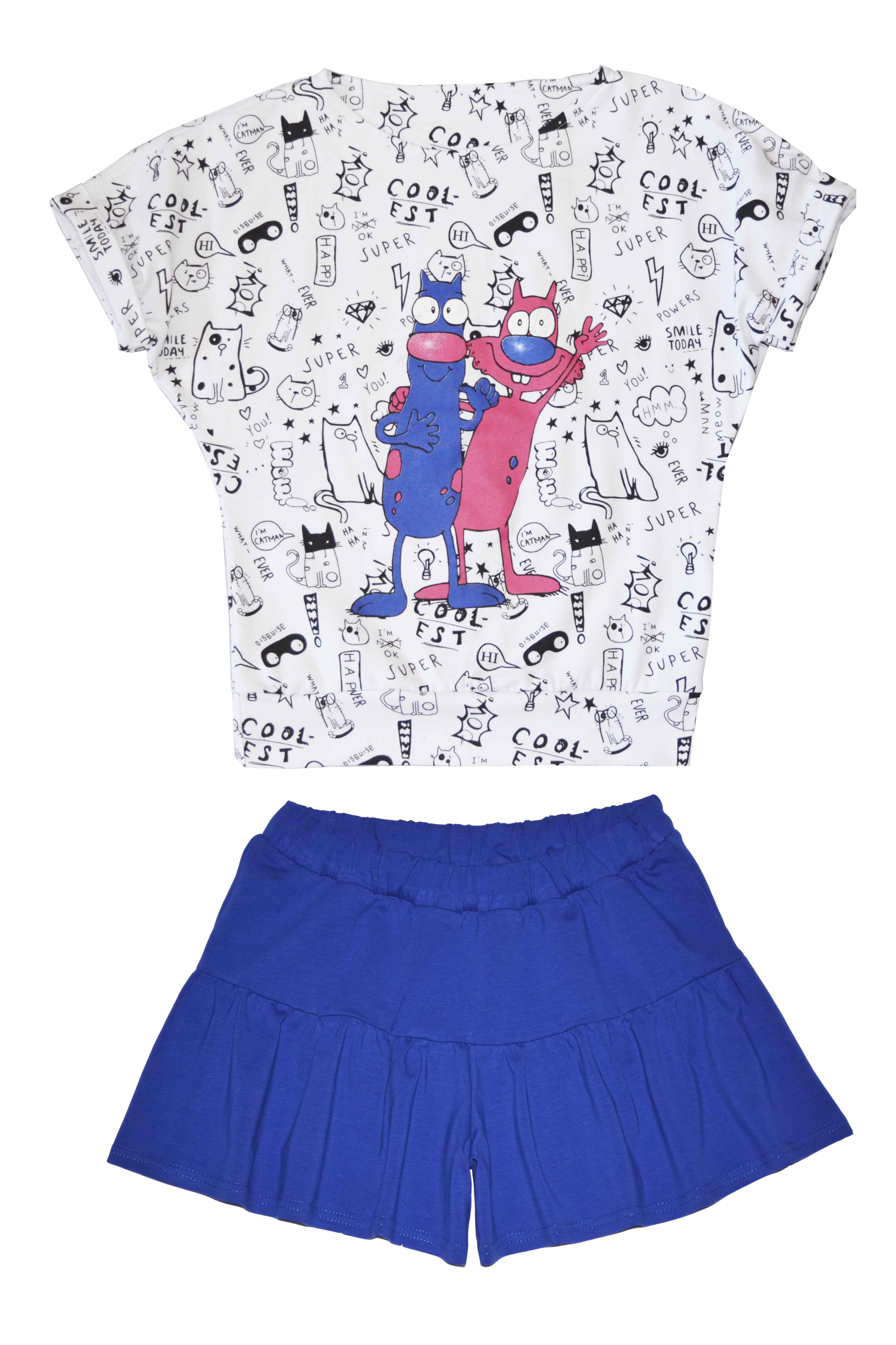 Джемпер с коротким рукавом на манжетах. Низ джемпера на манжете. Принт. Юбка-шорты короткие.