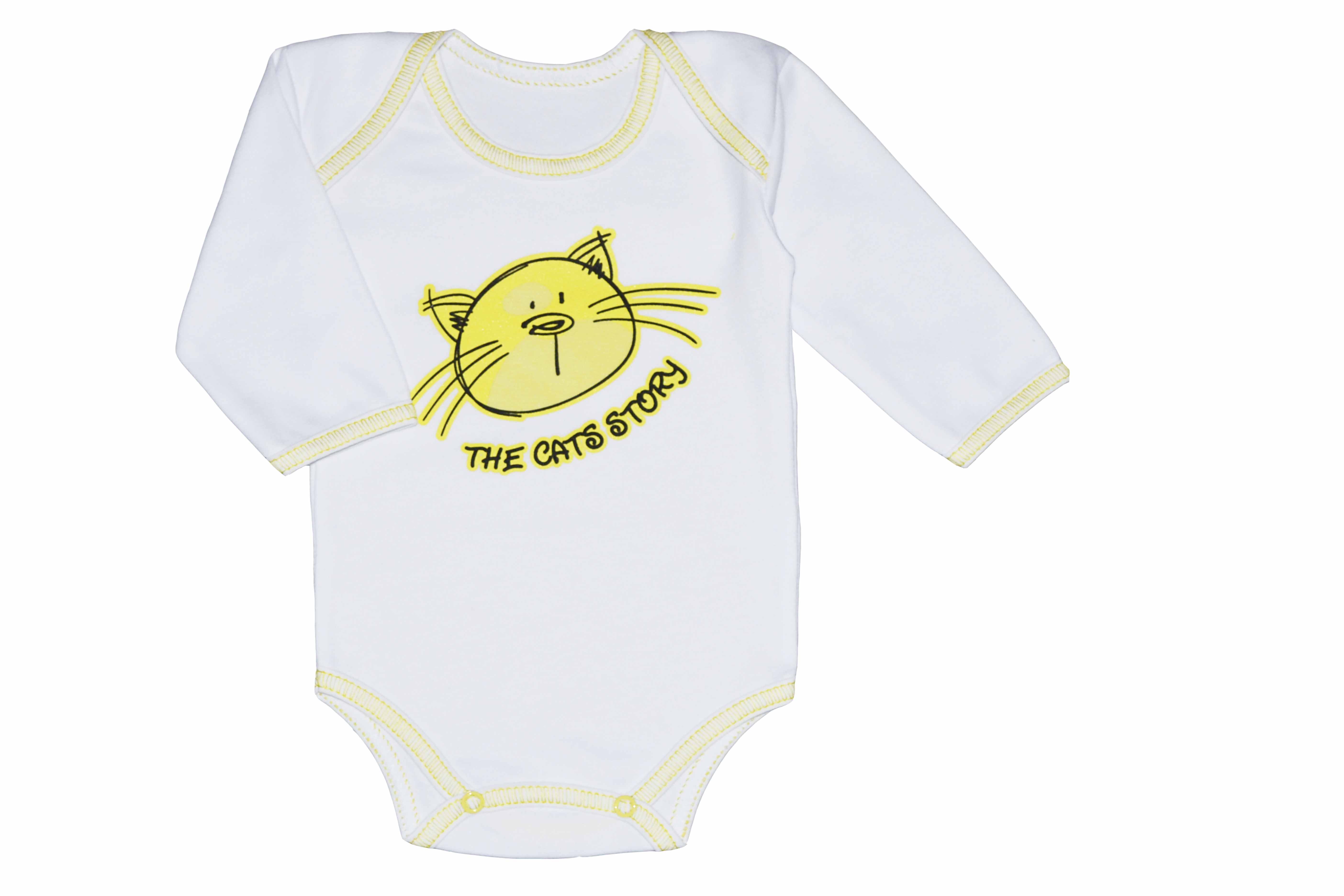 Боди с длинным рукавом.Удобный вырез горловины. Застежка на кнопки. Принт.