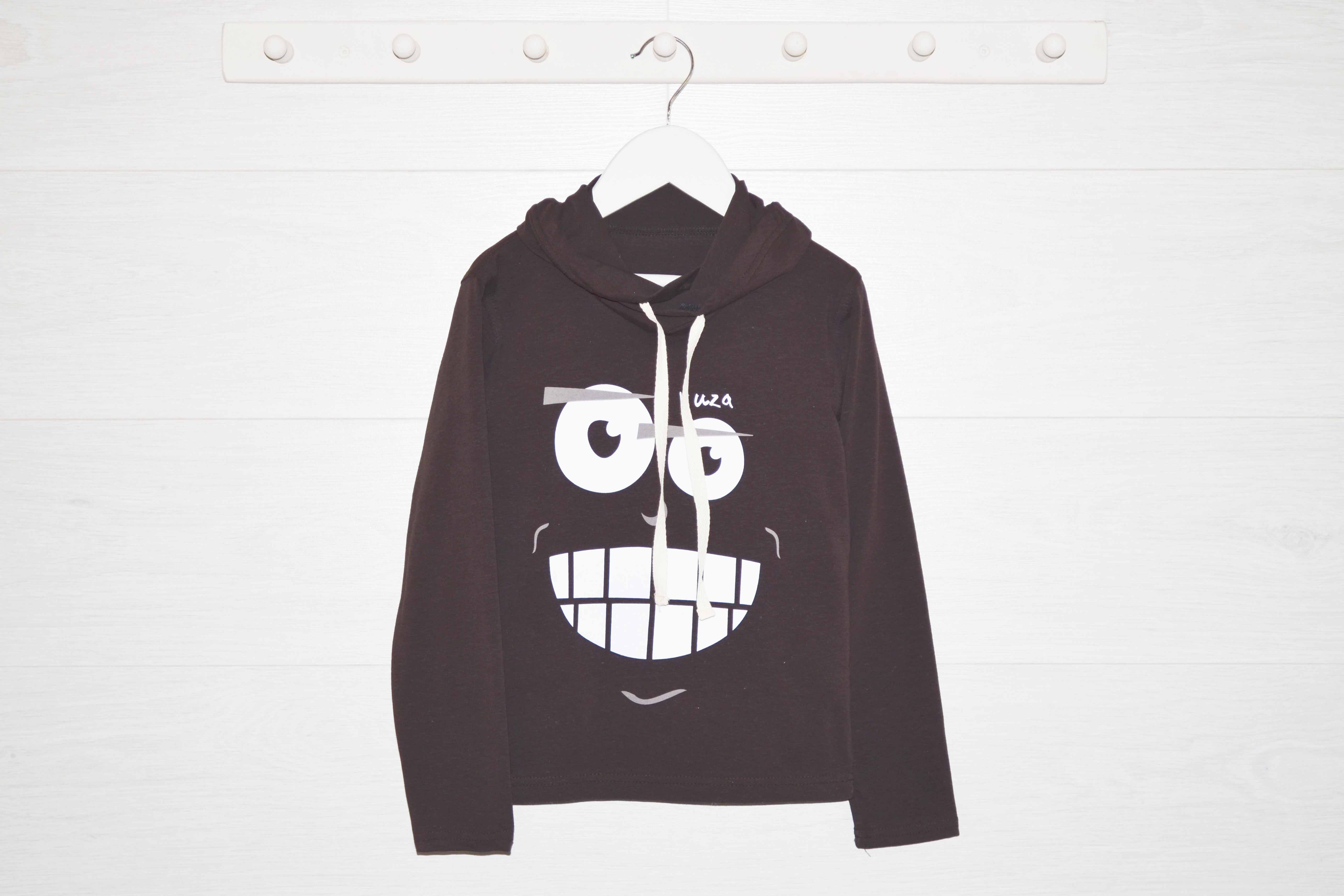 Джемпер с длинным рукавом. Печать по переду. Увеличенный воротник-хомут. Рукава с отворотом.