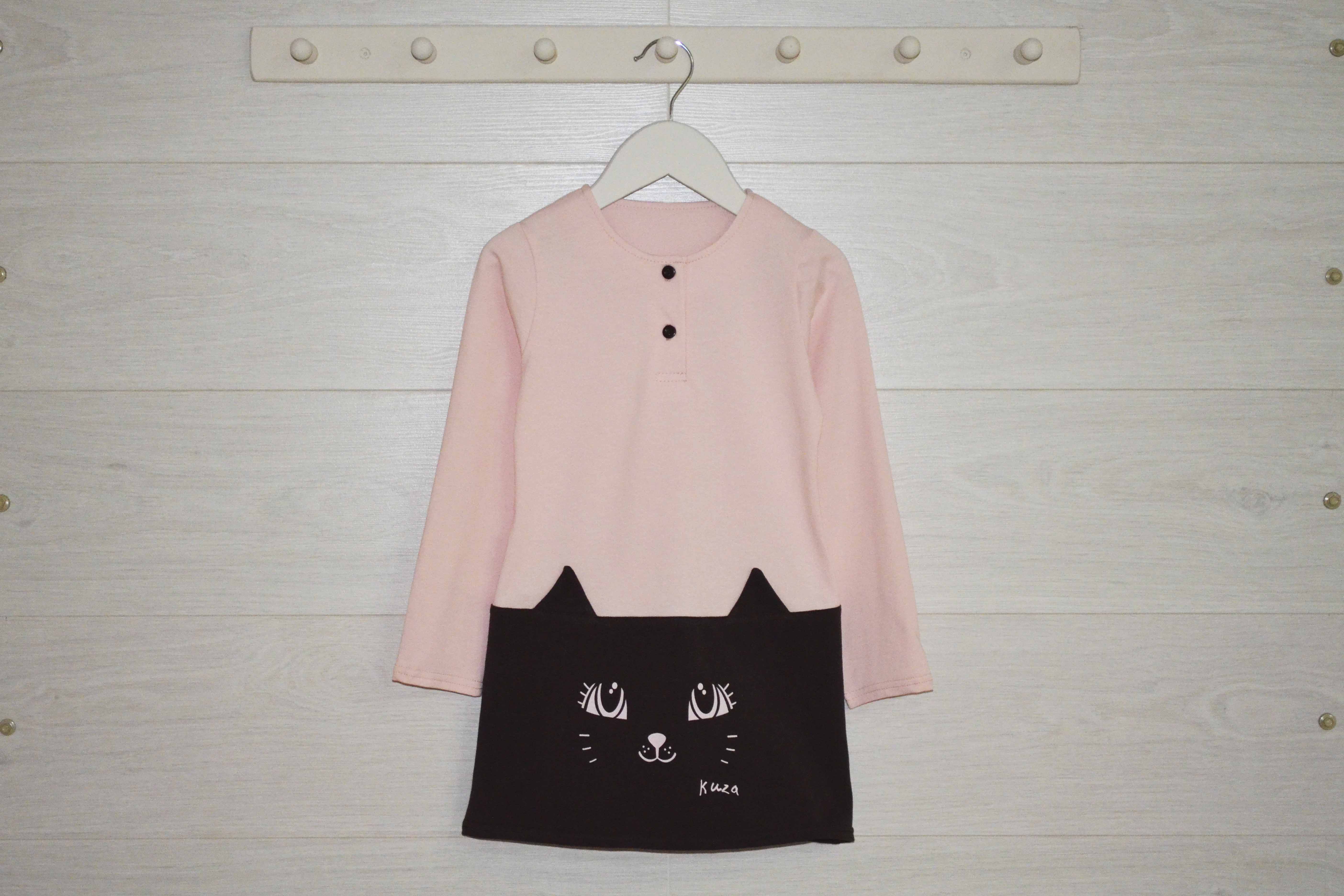 Платье с длинным рукавом. Застежка на пуговички. Принт. Платье для худеньких девочек.