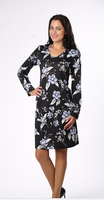 Платье полуприлегающего силуэта, длинный рукав, V-образный вырез горловины окантован.