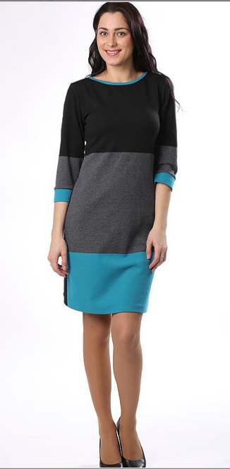 Платье полуприлегающего силуэта, горловина "лодочка", рукав 3/4